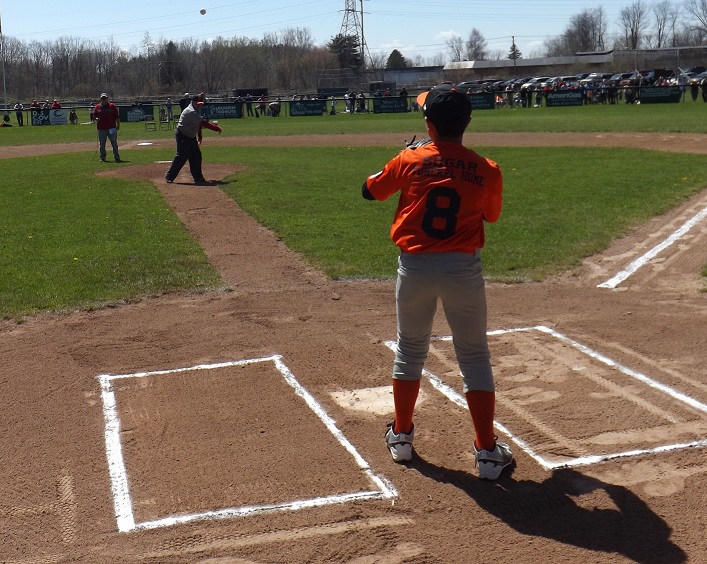 Fulton Little League Vice President, Dave Webber officially starts the 2016 season with the opening pitch.