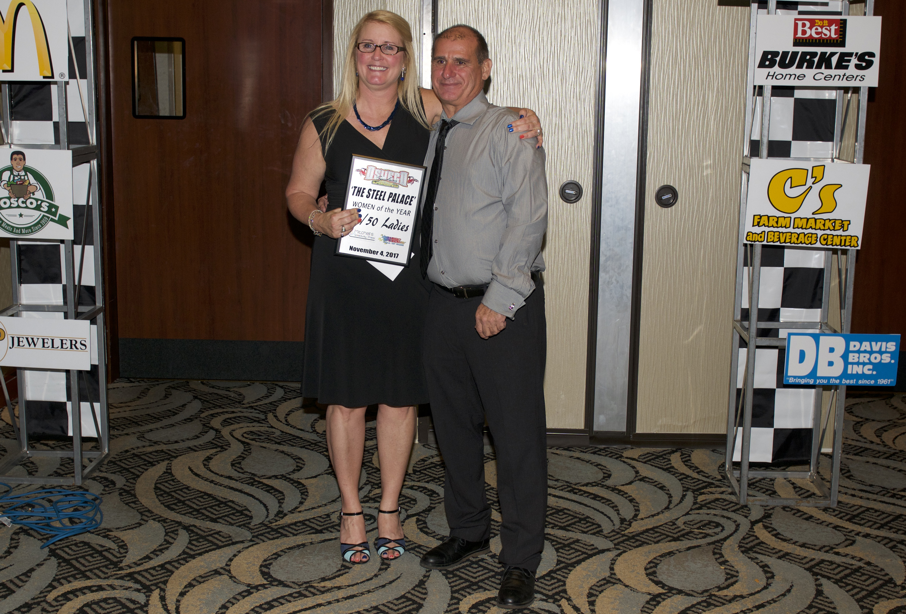The Lois Matczak Women of the Year Award went to the 50/50 girls. Accepting is Trina Helmke and presenting is John Torrese.