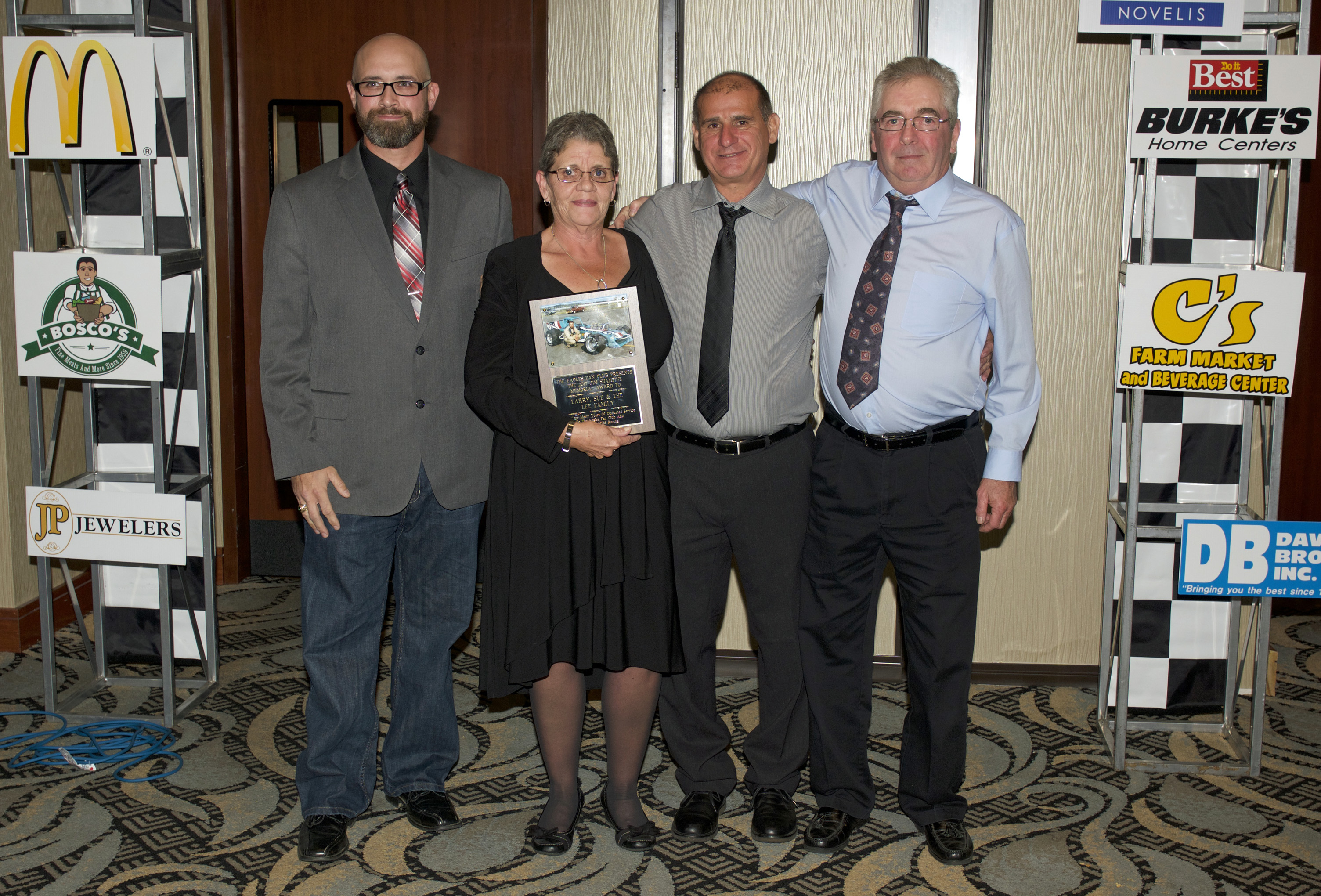 The Jim Shampine Memorial Award went to Sue and Larry Lee. Pictured with presenters, from left are Eric Syrell, Sue Lee, John Torrese and Larry Lee.