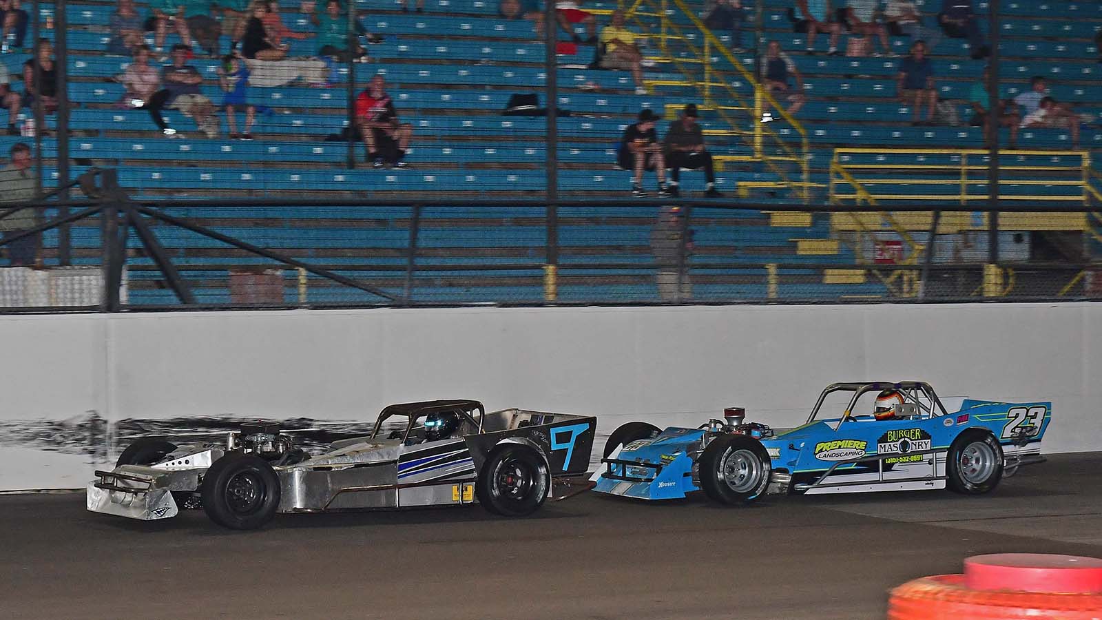 Race leader Griffin Miller 9 tries to hold off a hard charging Dan Kapuscinski 23. Danny K would get by after a late race restart and go on to win. Miller was right behind in second.